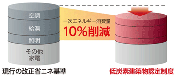 (※1)低炭素建築物の認定 都市におけるCO2の排出を抑制することを目的に、「都市の低炭素化の促進に関する法律(通称:エコまち法)が2012年12月に施行され、「低炭素建築物」を認定する制度が創設されました。市街化区域内において、低炭素化に関する先導的な基準に適合する建築物を認定する制度で、建設地の所轄行政庁が認定を行います。