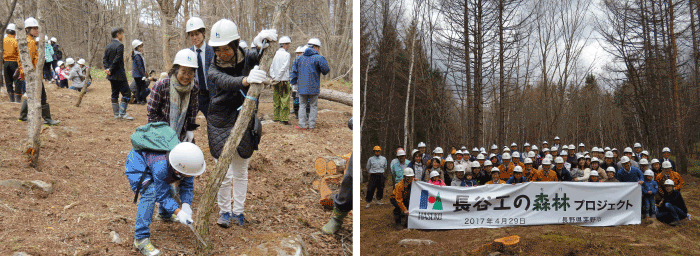長谷工グループは、4月29日(土)に、長野県茅野市と「森林(もり)の里親契約」(※)を締結し、創業80周年記念「長谷工の森林(もり)」プロジェクトをスタートしました。プロジェクトのスタートにあたり、茅野市の南大塩公民館にて森林の里親契約記念式典を開催し、式典終了後に長谷工の森林(茅野市七ヶ耕地財産区有林)にて森林整備作業や記念植樹を実施致しました。