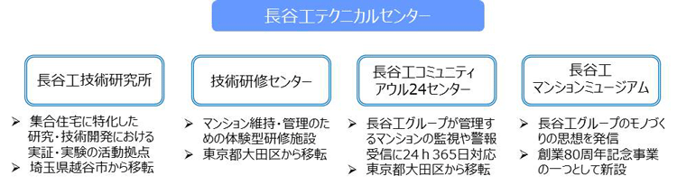 「長谷工テクニカルセンター」は、「技術研究所」、「技術研修センター」、「長谷工コミュニティアウル24センター(マンション緊急対応センター)」、「長谷工マンションミュージアム」から構成される施設で、集合住宅に関する研究・技術開発やスタッフの教育・研修、そして様々な情報発信を行っていくとともに、多摩市の'にぎわいのあるまちづくり'に貢献してまいります。