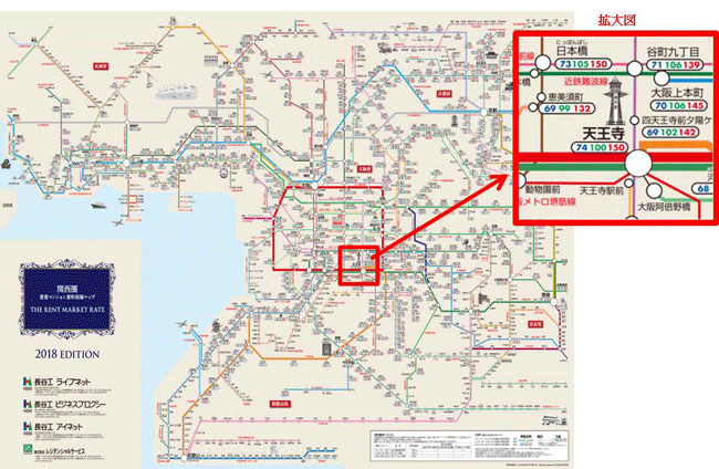 長谷工ライブネットは、関西圏沿線・駅別の賃料相場を分析し、「関西圏賃貸マンション賃料相場マップ2018年版(THE RENT MARKET RATE)」(以下、「関西圏賃料相場マップ」)を完成させました。