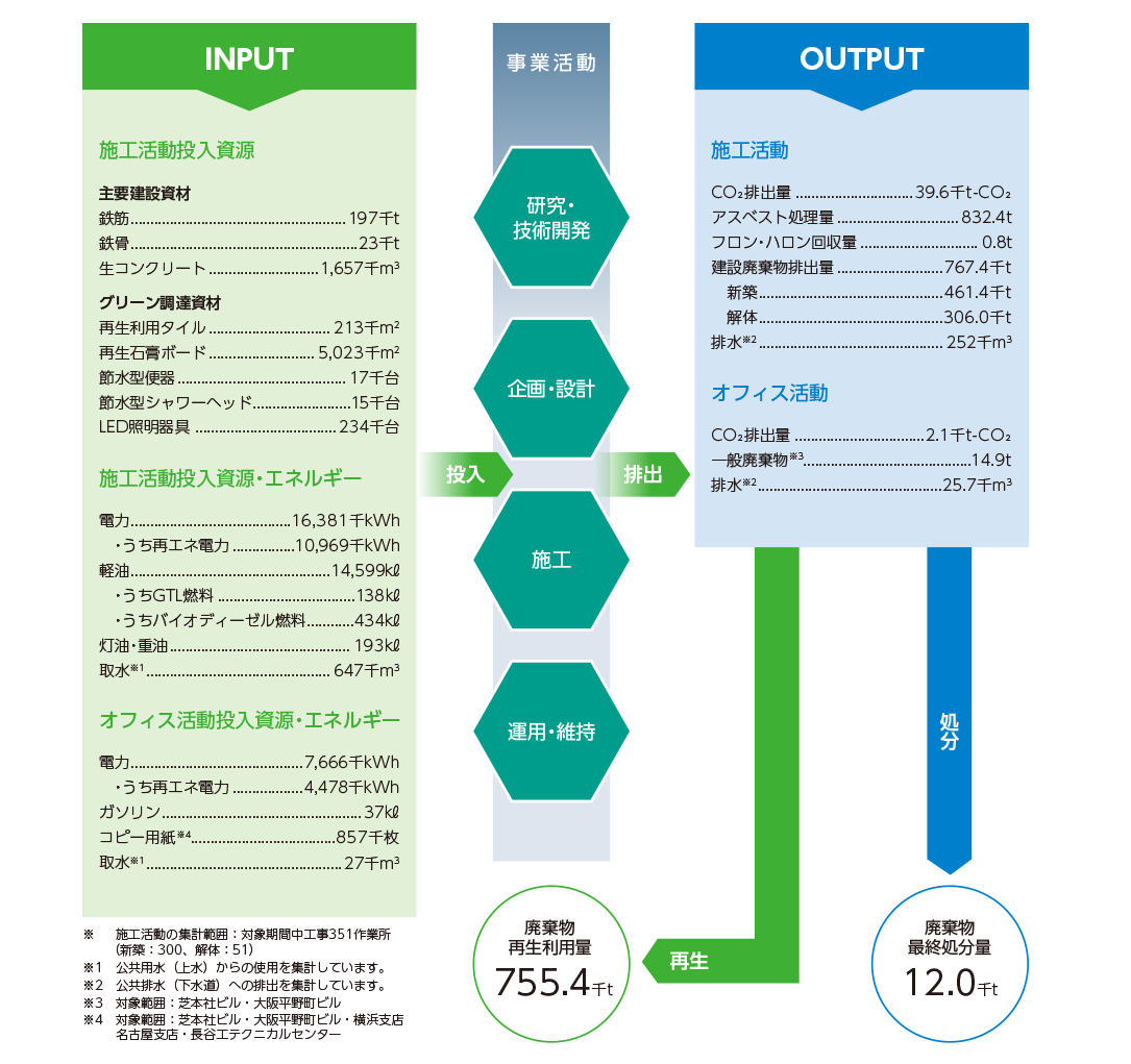 | 廃棄物排出量 | 施工活動 | 千t | 616.8 | 1,260.2 | 947.2 | 718.5 | 767.4 | 単体※1 |
