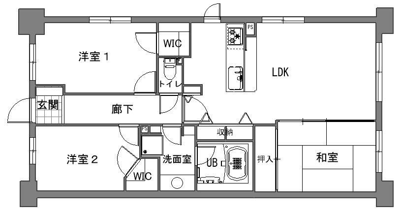 - キッチン、リビングダイニング、洋室、和室、玄関、水まわり、収納