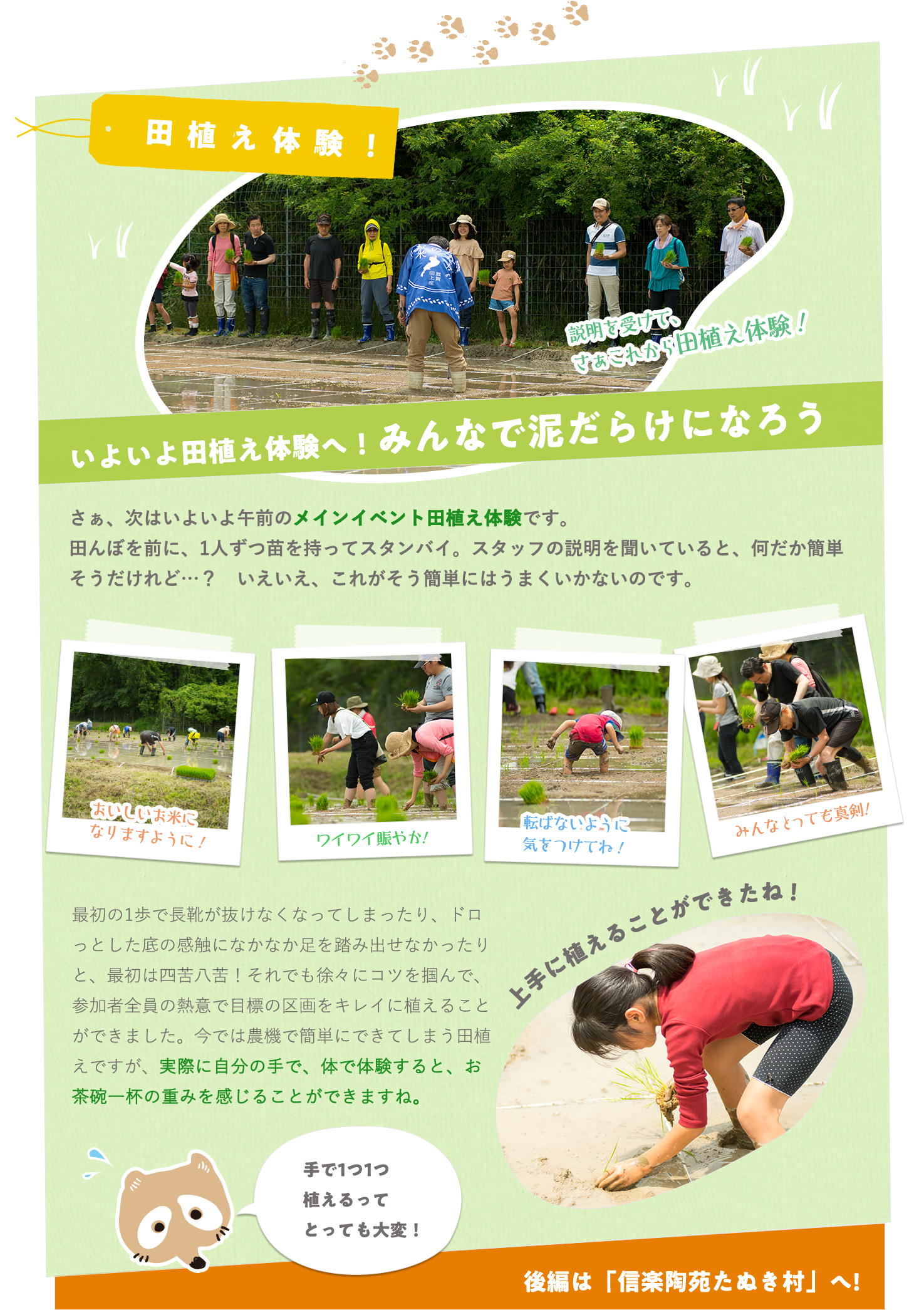 昨年も大好評だった田植え体験が、今年はさらにパワーアップして、信楽焼き陶芸体験をプラス!みなさまと過ごした楽しいイベントの様子を、前編・後編に分けて、動画も交えてご紹介してまいります。