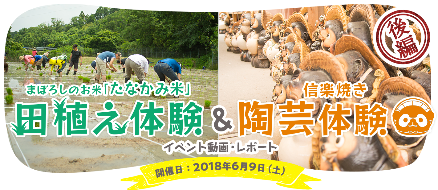 昨年も大好評だった田植え体験が、今年はさらにパワーアップして、信楽焼き陶芸体験をプラス!みなさまと過ごした楽しいイベントの様子を、前編・後編に分けて、動画も交えてご紹介してまいります。