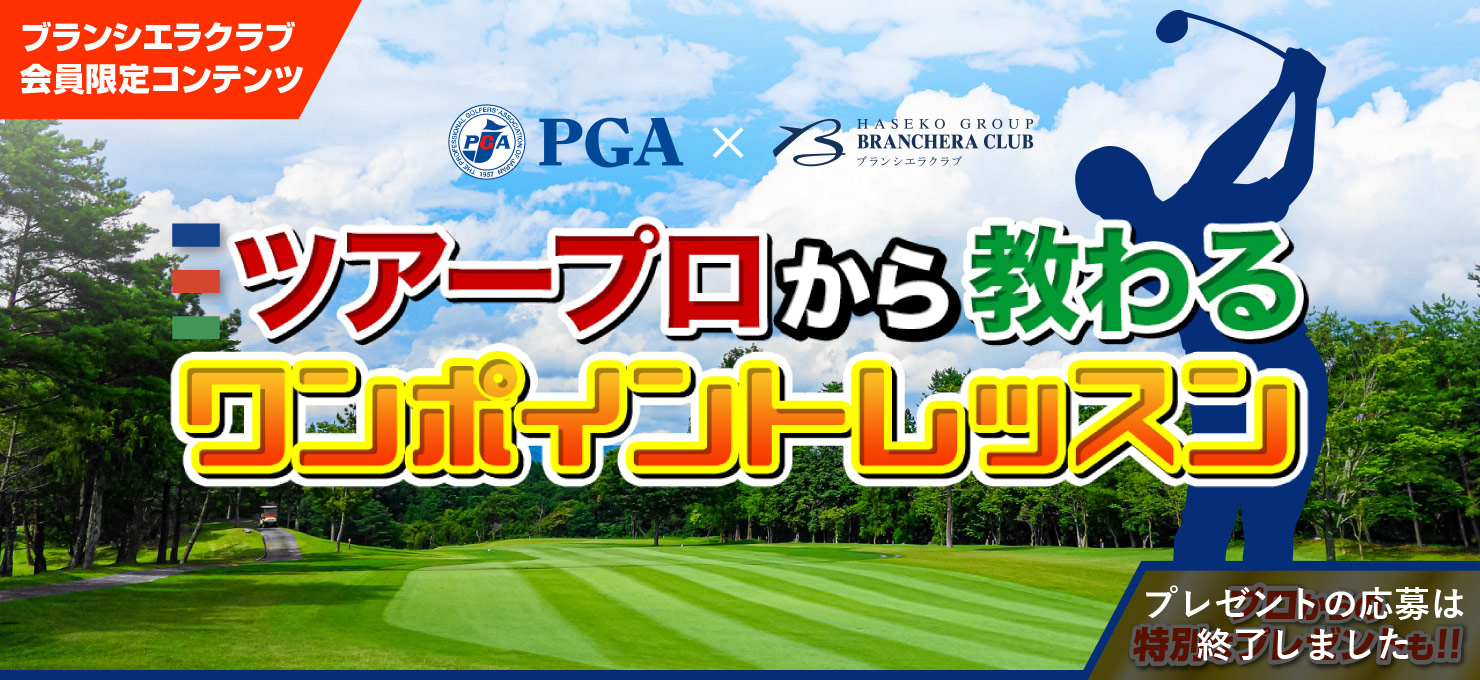 PGA(日本プロゴルフ協会)とのタイアップにより、ブランシエラクラブ会員さま限定でプロによるミニレッスンを公開します!ミニレッスンは全5回。メールマガジンで公開をお知らせしますのでお見逃しなく!