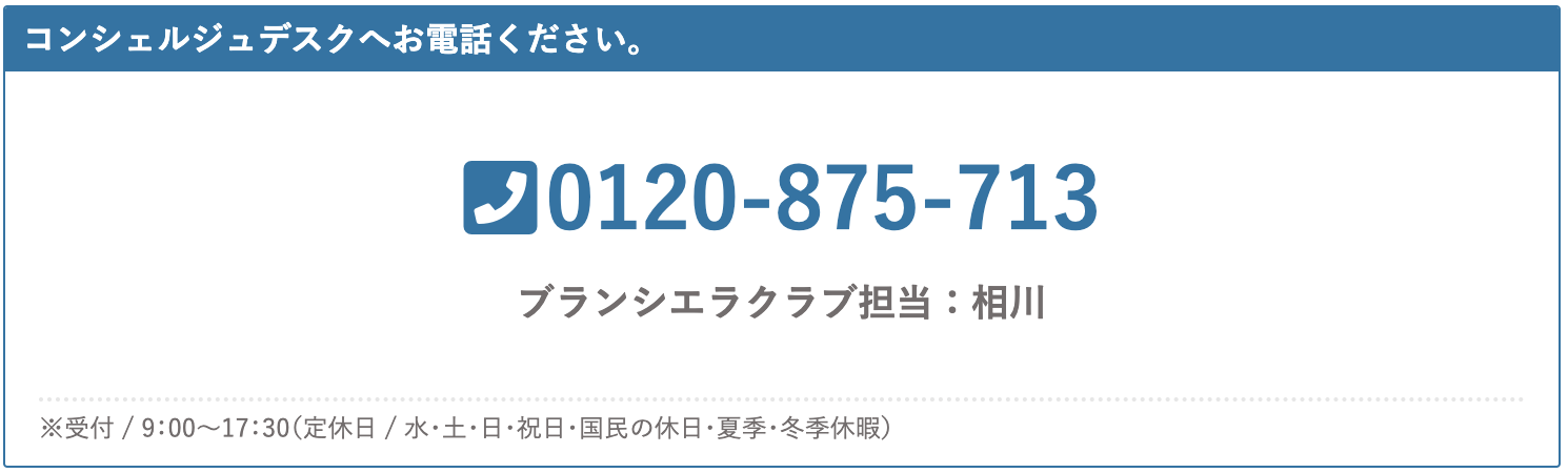 その際に「ブランシエラクラブの優待を使いたい。」とお伝えください。