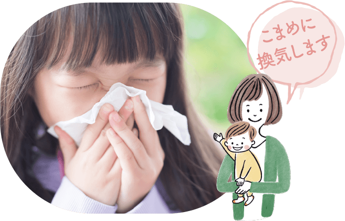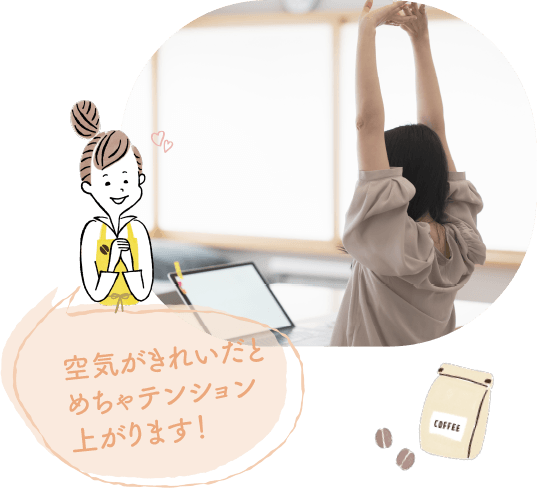 換気をしないと起きる空気の汚れで、一番気になるのはどんなこと?みなさんの答えのトップは、やはり「ウイルス」でした。コロナウイルスは空気感染しないといわれていますが、問題は飛沫。会話や咳、くしゃみをしたとき、口から飛び散る細かいしぶきのことです。換気の悪い空間では飛沫が空気中にふわふわと舞い続けるため、誰かが放出した飛沫の中にコロナウイルスが含まれていると、その飛沫が口や鼻などから入って感染するリスクがあります。換気することで、飛沫を含んだ空気が屋外へ排出されるので安心ですよね。みなさん、よくわかっていらっしゃる!