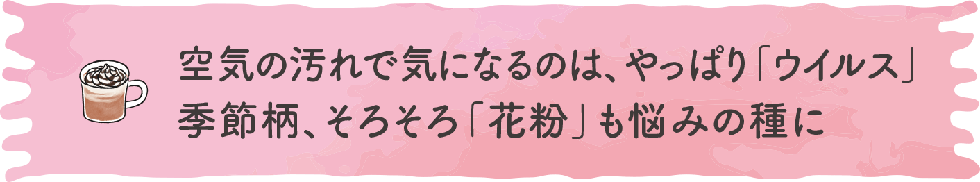 次いで気になることで多かったのは「ほこり」、「花粉」です。さらに「におい」、「湿度」、「結露」と続きました。本格的な花粉シーズンがやってきました。花粉症の人にとって、室内に入り込む花粉は厄介な存在。大きく窓を開けて換気するわけにもいかず、悩ましいところです。空気清浄機やエアコンの空気清浄機能などを活用して花粉をできる限りシャットアウトしたいものですね。