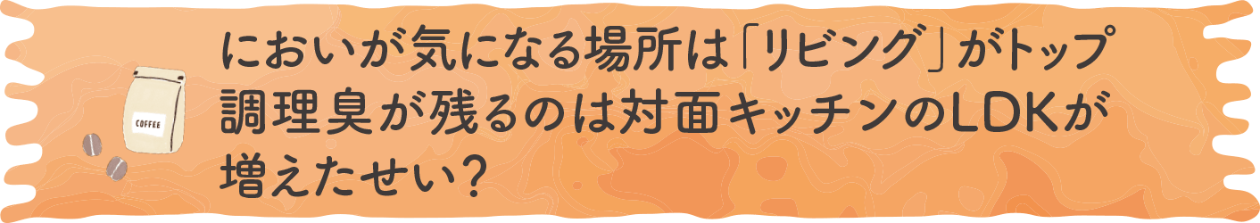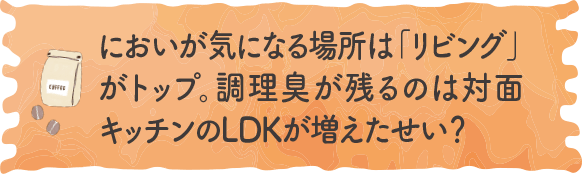 あなたの家の中で「ん?なんかにおう」とよく感じるのはどんな場所?空気がよどんで汚れがちだと思うのはどこですか?最近の住まいはリビングダイニングと一緒になった対面型キッチンのLDKが主流だからでしょう。多かったのは「リビング」という回答。「焼肉をした後のにおいがリビングに残る」、「キッチンの調理のにおいが流れてくる」といった声が聞かれました。もしかすると、キッチンの換気扇の汚れが、リビングににおいがこもる原因になっているのかもしれません。換気扇のお掃除は面倒ですが、まめに行なった方がいいですね。換気が良くなると空気も爽やかになりますよ。