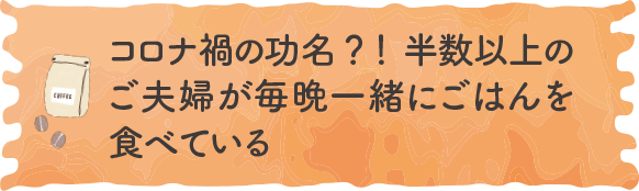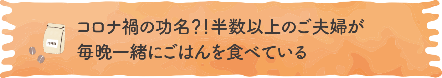 パートナーと向き合う時間といえば、やっぱり食事どき。特に夕食タイムはゆっくり会話ができる貴重なひとときですよね。そこで、みなさんに「週何回くらい夫婦で一緒に晩ごはんを食べているのか」を尋ねてみました。コロナ禍で在宅時間が増えたこともあってなのか、「ほぼ毎日、夫婦で一緒に晩ごはんを食べている」というご夫婦が半数以上。「週の半分ぐらい」を加えると約7割に上ります。かなり多いといえるのではないでしょうか。
