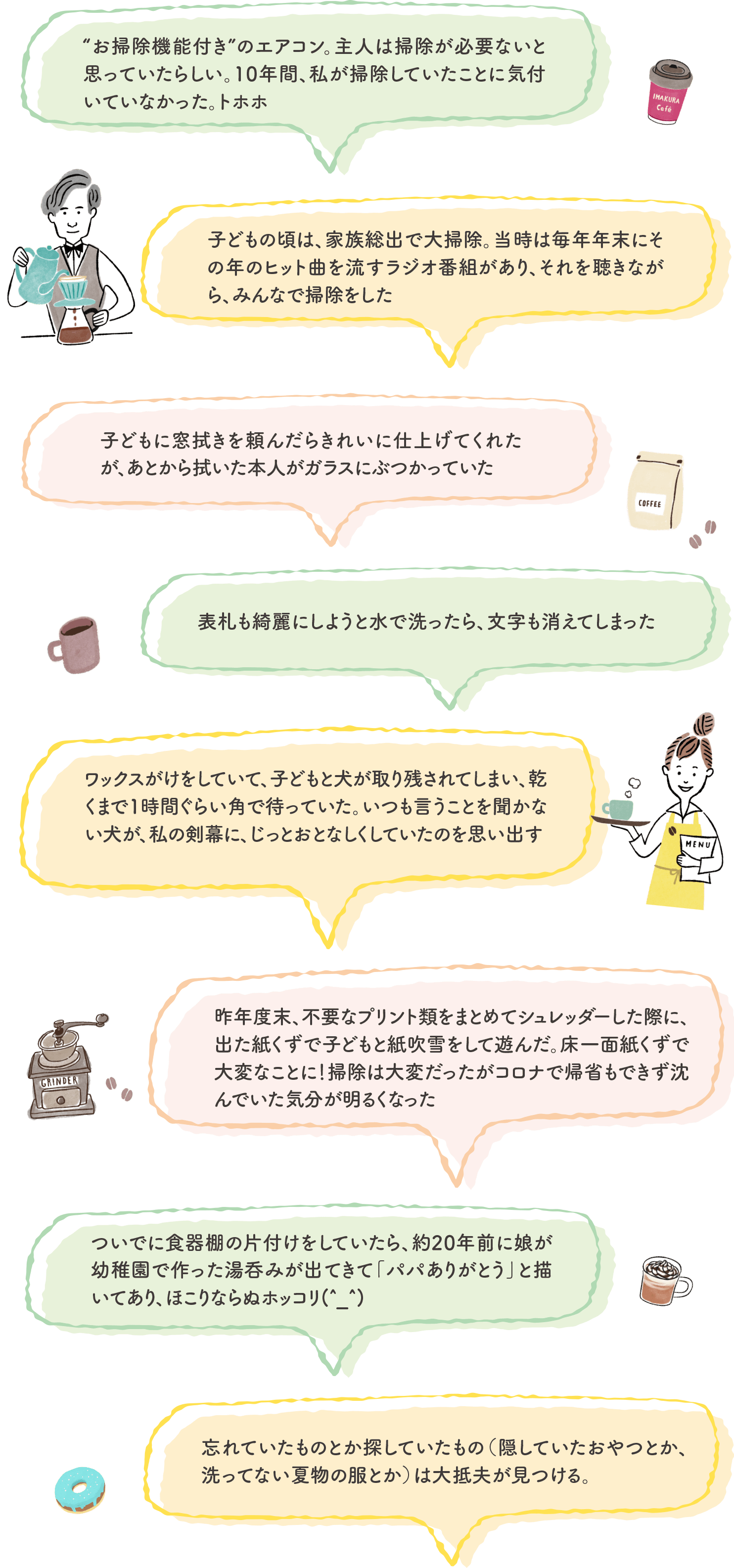 もう一方は「テレワークで日中の人数が増え、家の中が常に雑然としています」や「家族が在宅勤務の日は“掃除機はうるさいからやめておこう”とか気を使います」と、かえって片付かなくなった、掃除頻度が減ったパターン。家族構成にもよると思いますが、どちらにせよ、影響は大きかったようです。