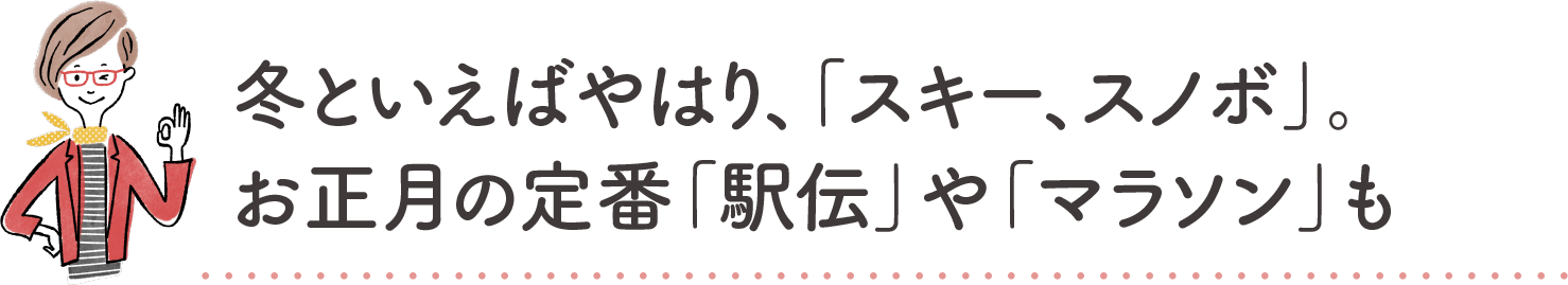 また、冬がシーズンの「駅伝」や「マラソン」などの“走る系”も上位に入っています。「ランニング歴20年以上で、特に冬はマラソン大会が多いので毎週のように参加していました」という実践派と、「箱根駅伝の応援をしています。息子が通う大学の父母のみなさんと一緒に応援するのが楽しいです」という観戦派と、幅広い層から人気です。