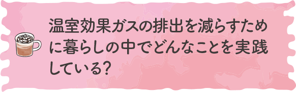 温室効果ガスの排出を減らすために暮らしの中でどんなことを実践している?“脱炭素”ってなんだろう? 温室効果ガスの排出を減らすために暮らしの中でどんなことを実践している?“脱炭素”ってなんだろう?