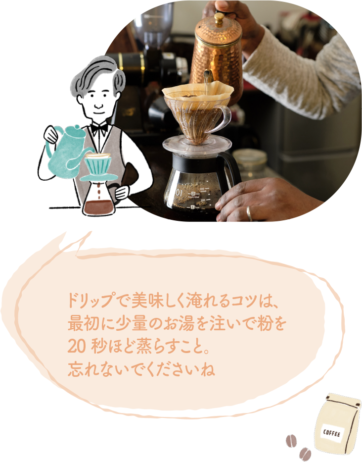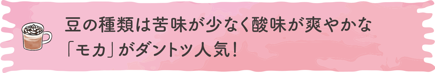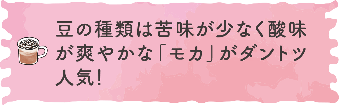 苦味や酸味、甘み、コクなどのバランスで成り立つコーヒーの味。豆の産地や焙煎度合いによって味わいが変わるのも魅力です。だからこそ、コーヒー通は豆にこだわる人が多いのでしょう。会員のみなさんに好きな豆を尋ねたところ、圧倒的な支持を集めたのがモカでした。好きな理由は「苦味が少ない」「まろやか」「香りが好き」など。ちなみにモカはエチオピアなどで収穫されたコーヒーの通称で、フルーティーで爽やかな酸味が特徴です。次いで多かったのがキリマンジャロ。こちらはタンザニア産のコーヒーで、「酸味とコクのバランスがいい」「野性味を感じる」といった声が上がりました。ブルーマウンテン、ブラジルも人気。ハワイのコナやマンデリンをこよなく愛する人もいました。