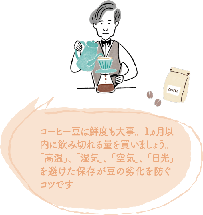 コーヒーとはどんな存在ですか?そんな問いかけに十人十色の言葉が返ってきましたが、「精神安定剤」、「やすらぎ」、「癒やし」、「気分転換のアイテム」など、リラックス効果を指すものが大半でした。「ストレスをやわらげて健康を維持してくれる、毎日欠かせない飲み物」、「ほっと一息、極上の休息が味わえる一杯」、「豊かな人生の必需品」といった熱い想いのこもった表現もちらほら。みなさんのコメントに深いコーヒー愛を感じました。