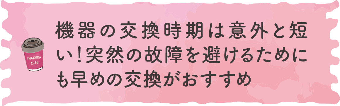 何事もなく動いているのが当たり前と思いがちで、いざ壊れるととっても困る住宅設備機器。実は買い替えや交換の「適齢期」があるのをご存じですか?