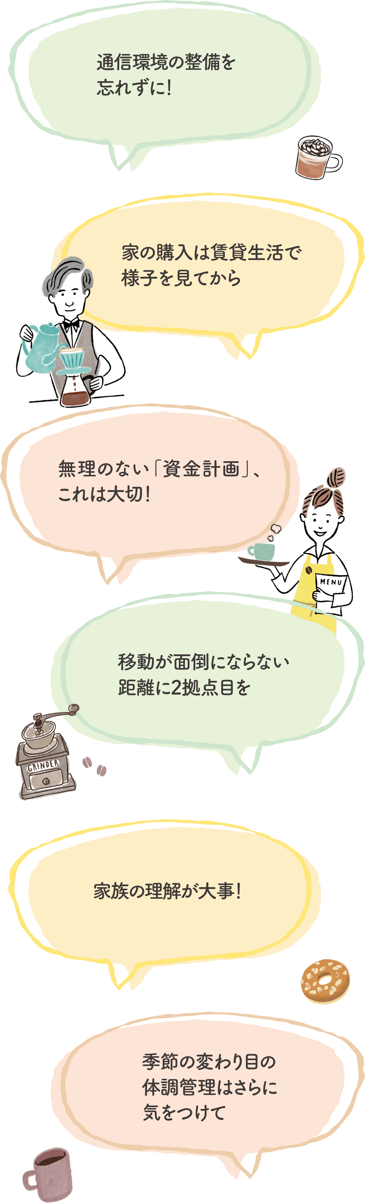 現在の住まいを手放して移住するのは決心がいるけれど、2拠点生活であればもとの生活に戻れるから、気軽にトライできるのがよいところです。別拠点で新たな趣味が見つかったり、楽しい交友関係が生まれたり、人生が彩り豊かなものに変わる可能性も大いにあり!ただし、拠点間の移動は金銭だけでなく、時間的にも身体的にも負担がかかります。2拠点生活を無理なく長く続けたいのなら、アクセスのよさも考慮しましょう。