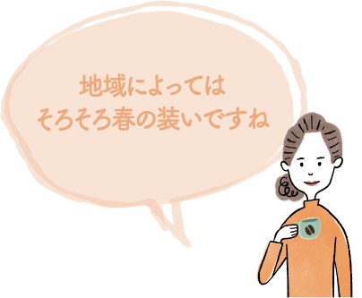 確かに昨今の気象状況を考えると、暦通りよりも体調や住んでいる地域の気候に合わせて柔軟に対応したいもの。ちなみに、春物に衣替えをする目安は一般的に、最高気温が15度以上といわれています。冬物がいらないぽかぽか陽気の温度です。