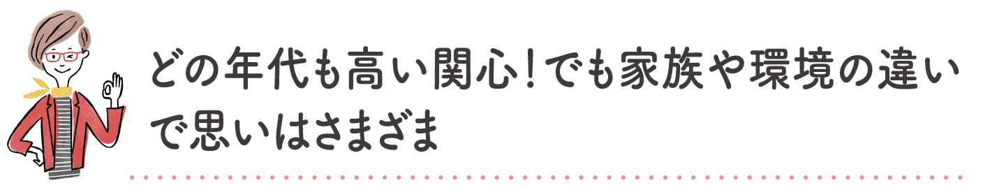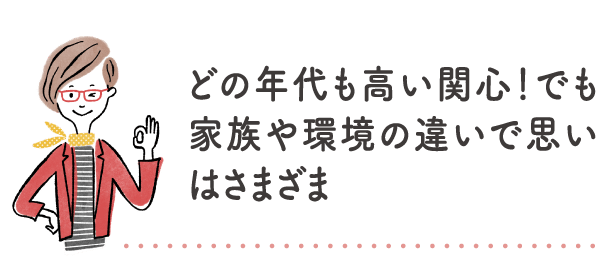 アンケートにお答えいただいた方の年代は、40代(29%)・50代(34%)・60代(37%)がほぼ三等分の結果に。40代の方から「どのような不便が出てくるのかまだ想像ができないので情報収集して、安心して暮らせる環境を整えたい」と早めの対策を検討する声が上がった一方で、50代の方からは「まだ想像もつかない。今は子育てと親の介護で手一杯です」と、リタイア目前の時期が意外に忙しいご様子も伝わってきました。