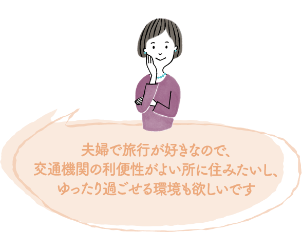 「現在の住まいは通勤に便利なようにと考えていたが、今後は景色や空気のよい所に住み替えたい」と、生活が変わることを理由に転居を考える方もいらっしゃいました。