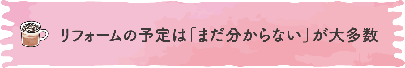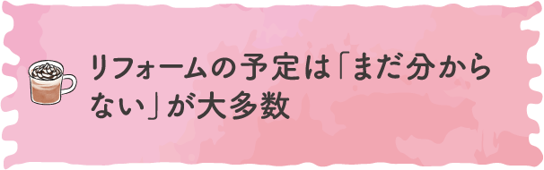 ご自宅や転居先をリフォームする予定の方は2割ほど(19%)。大多数の方(58%)が「まだ分からない」と回答しました。「今より快適に過ごせるように、ちょっとずつリフォームできればよいと考えています。具体的には未定ですが」と、「ゆくゆくは…」とお考えの方が多いようです。