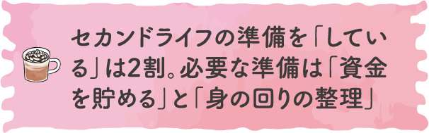 必要な準備としては「資金を貯める」(65%)と「身の回りの整理」(56%)が多く選ばれました。