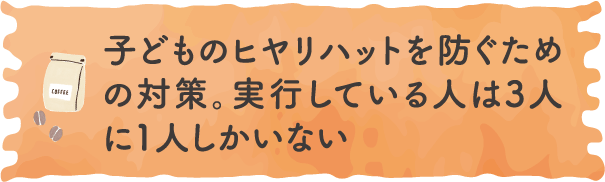 子育て中はヒヤッとすることの連続。子どもの行動は予測不可能ですから、何が起こるか分かりません。親としては「危ないっ!」と肝を冷やすことが多いですよね。そんな状況を表したのが「ヒヤリハット」。「冷や汗をかく=ヒヤリ」と「息をのむ=ハット」を組み合わせた造語で、重大な事故になってもおかしくなかった事象を指します。この「ヒヤリハット」という言葉、耳にしたことはありますか?会員のみなさんに尋ねると、「聞いたことがある」人が79%に上りました。近年はさまざまな場面で使われているため、多くの方に認知されているようですね。