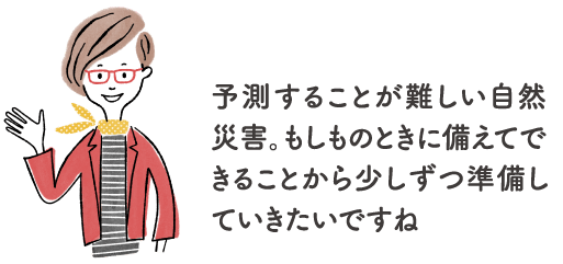 いつ、どこで、誰の身にも起こり得る地震災害。私たちの身を守る防災について今一度考えてみませんか。