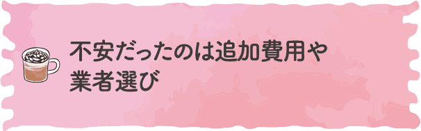 不安だったのは追加費用や業者選び