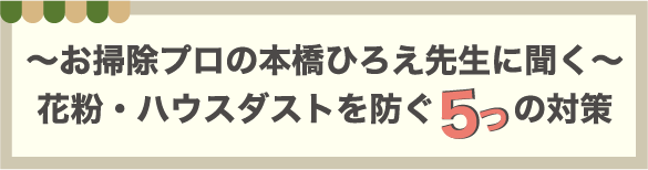 花粉・ハウスダストを防ぐためのオススメ対策を、お掃除プロの本橋ひろえ先生に教えてもらいました。善は急げ!今すぐ始めましょう。