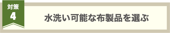 布製品には水で濡らすと繊維が傷むために、家庭での洗濯が禁止されているものがあります。その場合、ドライクリーニングに出すか、ブラシをかけるくらいしか手入れの方法がなく、花粉やカビ、ダニ、皮脂汚れなどが付いても洗って落とすことができません。清潔に使いたいものは「水洗い可能」な繊維の衣類や布製品を選びましょう。洗濯機で洗えるのか、手洗いの手間が必要なのかの確認もお忘れなく。洗濯タグで確認してくださいね。
