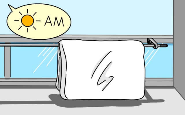 風通しのよい場所に、1日天日干しして、しっかり乾燥させましょう。表面が乾いても、布団の中に水分が残っていることがあります。
