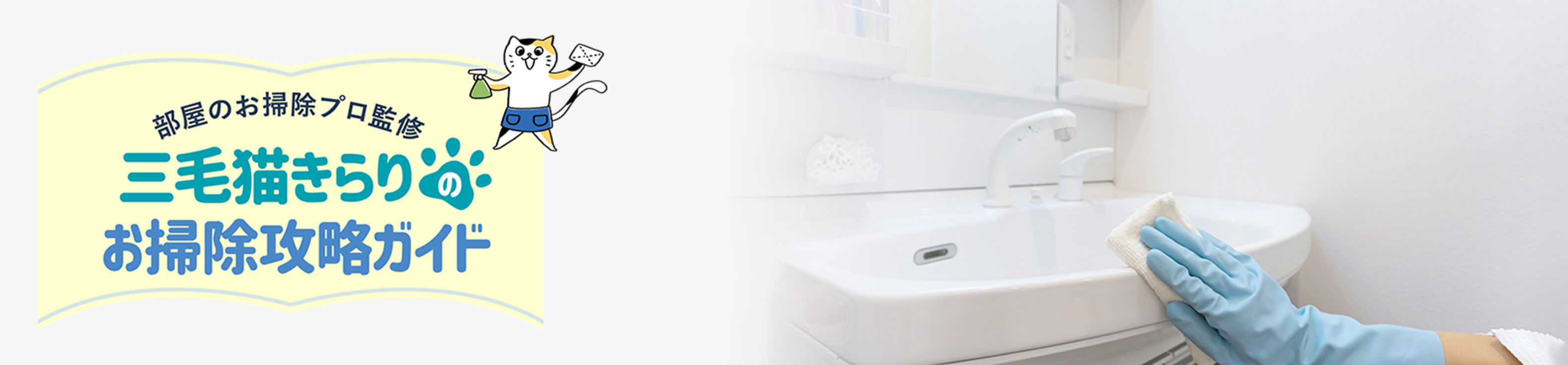 洗面台の掃除はこまめに行なうのがポイントニャ!「使用後は拭き取る」を徹底しようニャ!
