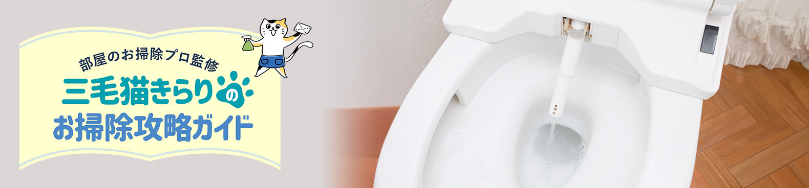 トイレのノズルは中性洗剤を使って簡単に掃除できるニャ!トイレのなかでも忘れられがちな場所だから要注意ニャ!