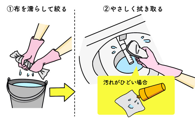 普段の掃除はやわらかい布を濡らして絞り、やさしく拭き取るだけです。汚れがひどい場合は中性洗剤を染み込ませて拭き取るのがおすすめです。