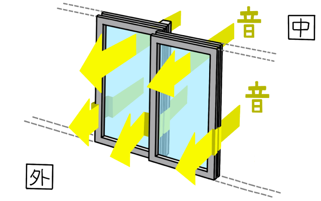 どこから音漏れしているか考えたとき、窓ガラスそのものを思い浮かべる人が多いかもしれませんが、実はサッシからの音漏れのほうが大きいといえます。音は空気の振動で伝わるため、ほんの少しの隙間も音漏れの原因となります。特に左右複数の窓ガラスが引き違いで設置されているサッシは、その隙間から音が漏れがちです。