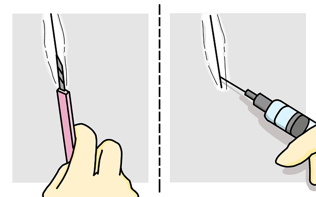まず、穴の中にほこりやごみが入っていないかを確認し、つまようじなどで取り除きます。次に補修用パテを綿棒や指先で穴に詰め、表面を壁になじませるように平らにならします。パテがない場合は、ティッシュペーパーやコピー用紙を小さく丸めて少し湿らせ、穴に詰める方法も有効です。その上から修正液や白い絵の具を塗れば、より自然に仕上がります。