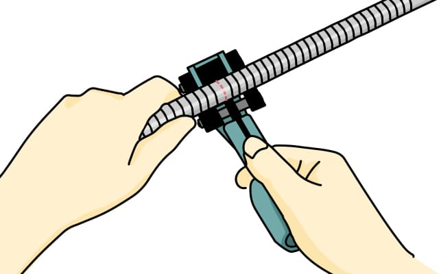 まずは、パイプカッターを使ってフレキシブルホースを切断し長さを調整していきます。