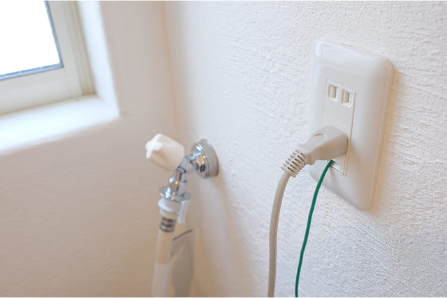 排水ホースを取り外すときは、外した際に水が漏れ出ないように洗濯機を脱水し、洗濯槽の水も拭き取りましょう。次に、洗濯機のコンセントとアース線を抜きます。電源がいつでも入る状態で作業をすると、誤作動や漏電を起こす危険があるので、忘れずに抜いてください。