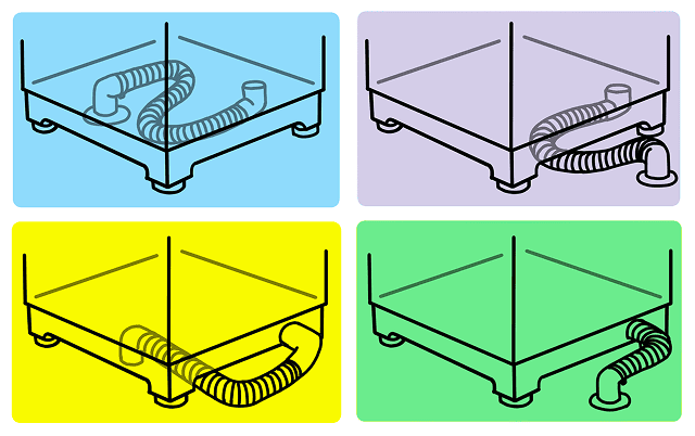 洗濯機本体と排水口をつなぐ排水ホースの取り付け位置は、洗濯機の種類や設置場所の設計など、ご家庭によって異なります。排水ホースの接続口は、洗濯機本体の下部や側面から接続できるのが一般的です。また、排水口の位置も、本体の真下に位置するケースや本体の横にあるタイプなどさまざまです。そのほかにも、防水パンやかさ上げの有無によって、取り付けと取り外し方法は違ってきます。