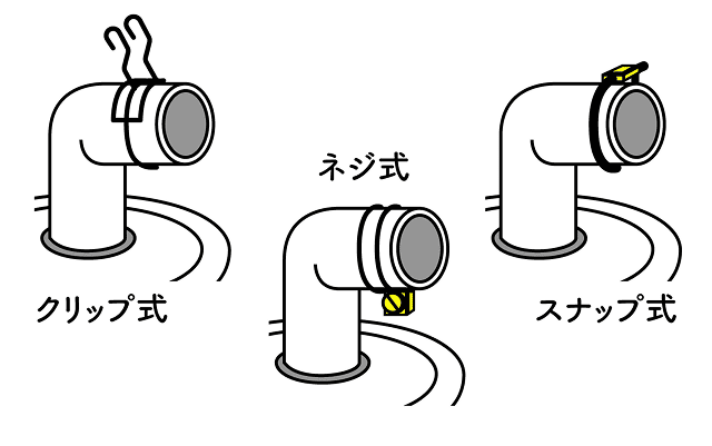 排水ホースのクリップには、「ネジ式」「クリップ式」「スナップ式」の3つの種類があります。クリップが異なれば外し方も異なるので、事前に確認しておくとよいでしょう。