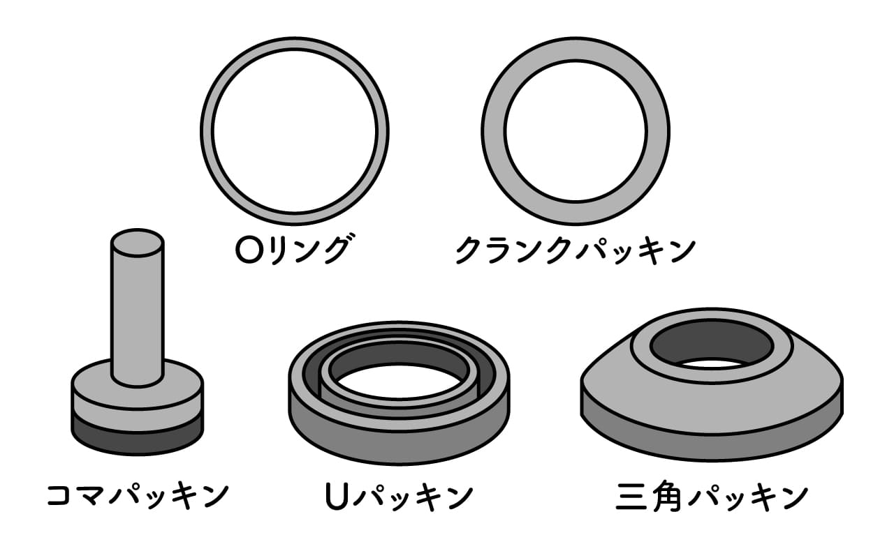 蛇口に使われるパッキンは、大きく分けて以下の5種類です。