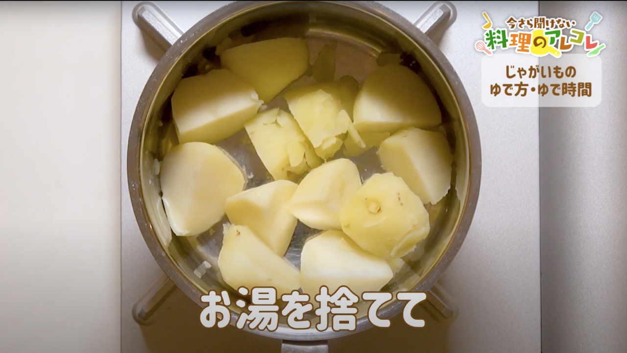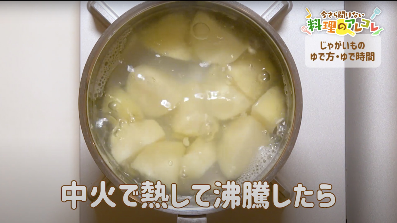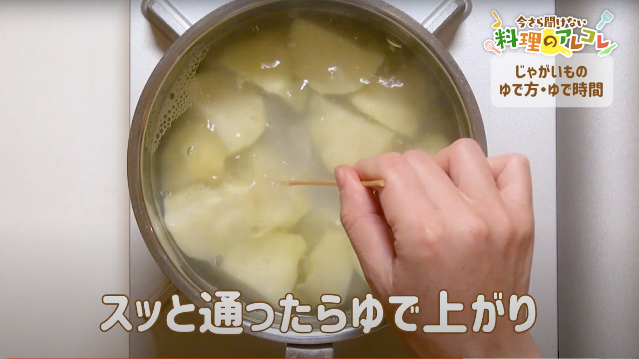 じゃがいもを水からゆでることで、全体の温度がゆっくりと上がっていくため、中心と表面の加熱ムラによる煮崩れが防げます。