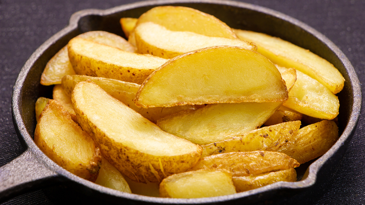 あらかじめじゃがいもをゆでておけば、ポテトフライを作るのも簡単です。まず、皮付きのまま丸ごと水からゆでます。竹串がスッと通るくらいになったら、しっかりと水気を切り、粗熱を取ってくし形切りにします。180度の油でこんがり色づくまで揚げたら、ホクホクのポテトフライの完成です。