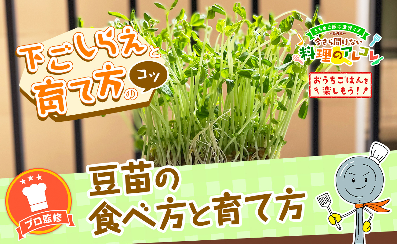 「うちのご飯は世界イチ」の番外編、お料理の基本をご紹介するミニレッスンへようこそ。第127回は、「豆苗の美味しい食べ方」です。家計に優しい食材の代表、豆苗の美味しい食べ方と、栽培・再収穫する方法をご紹介します。