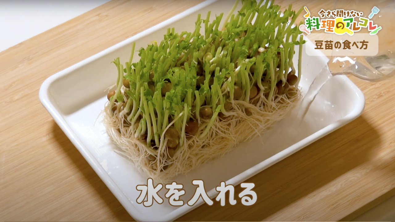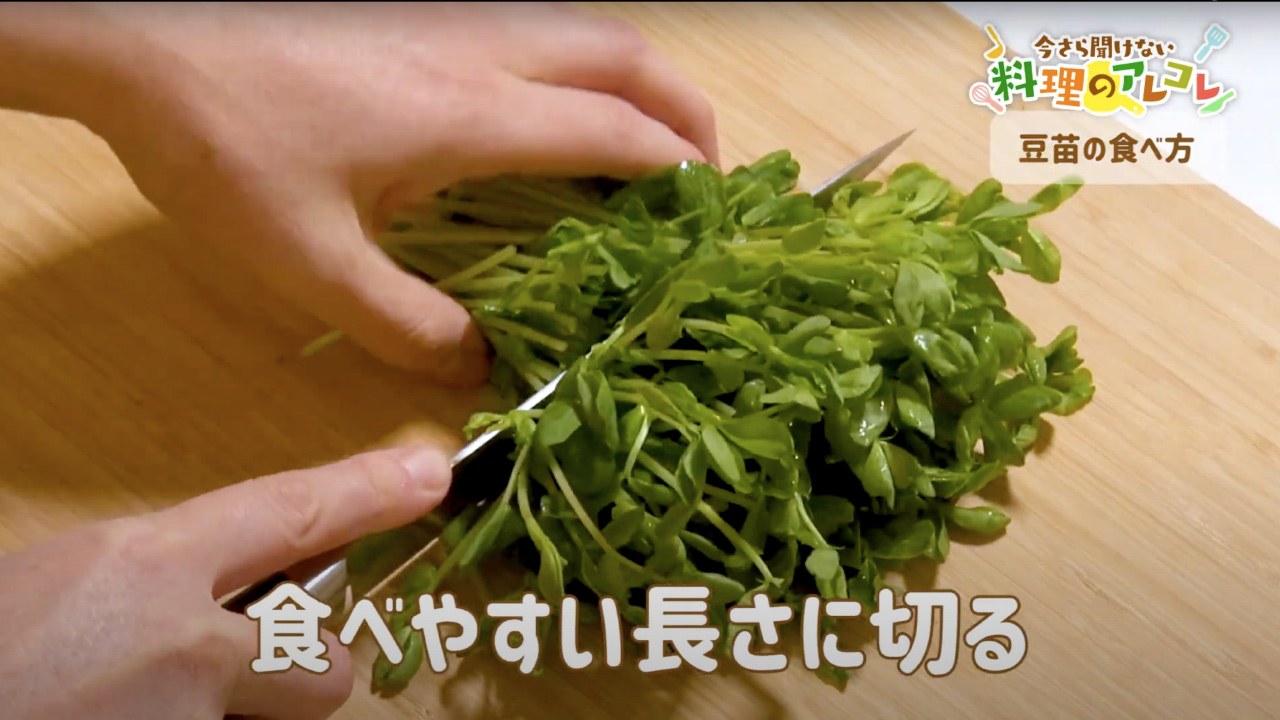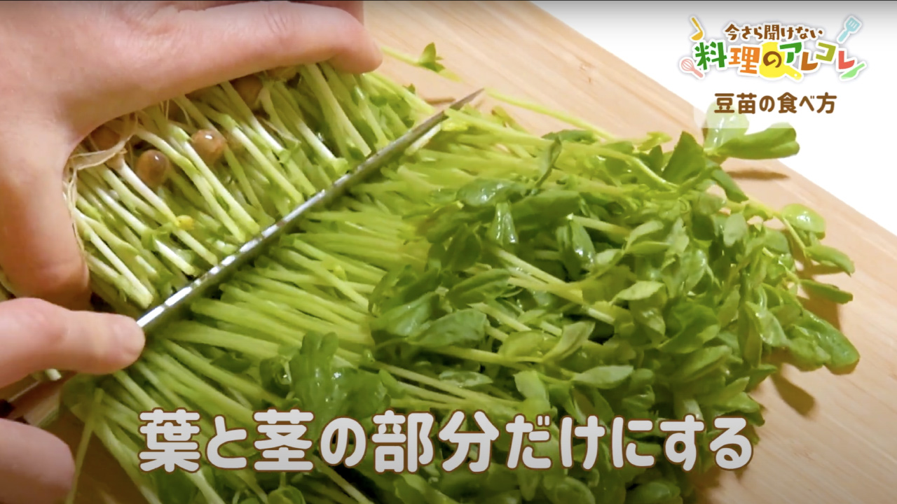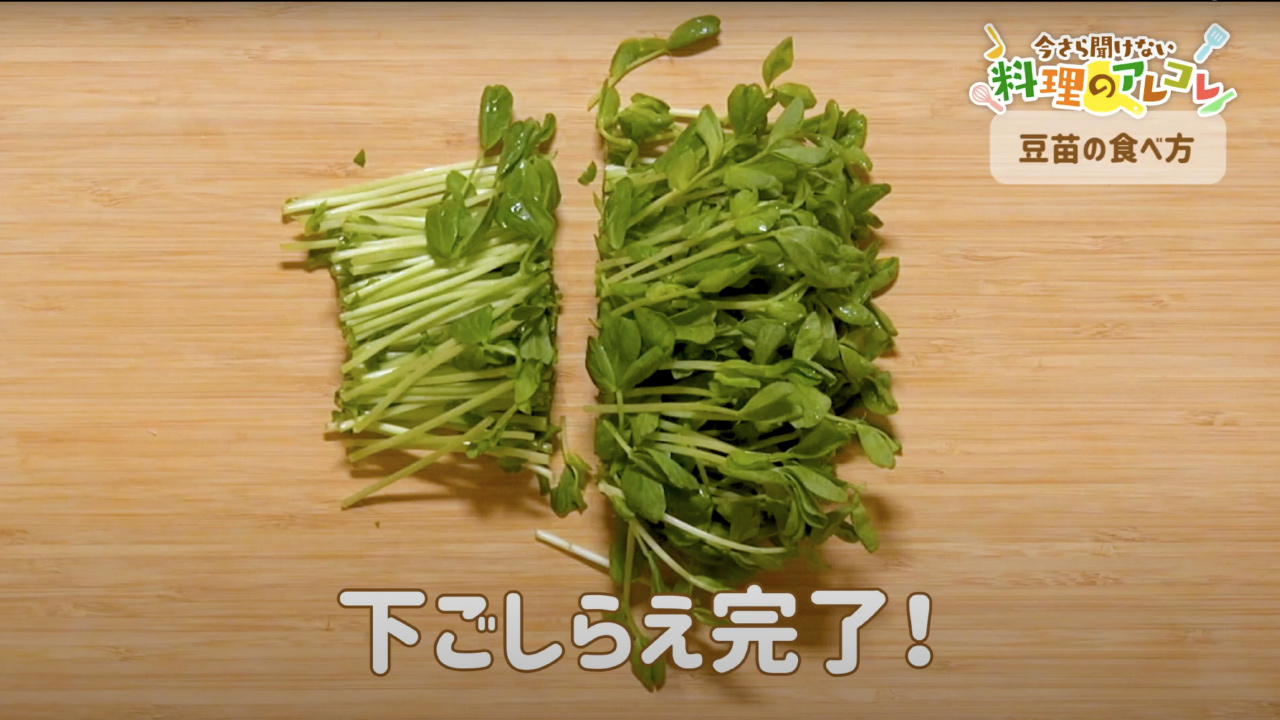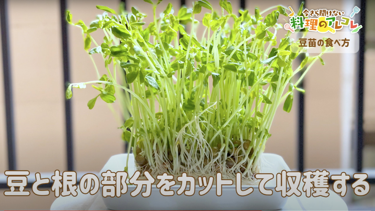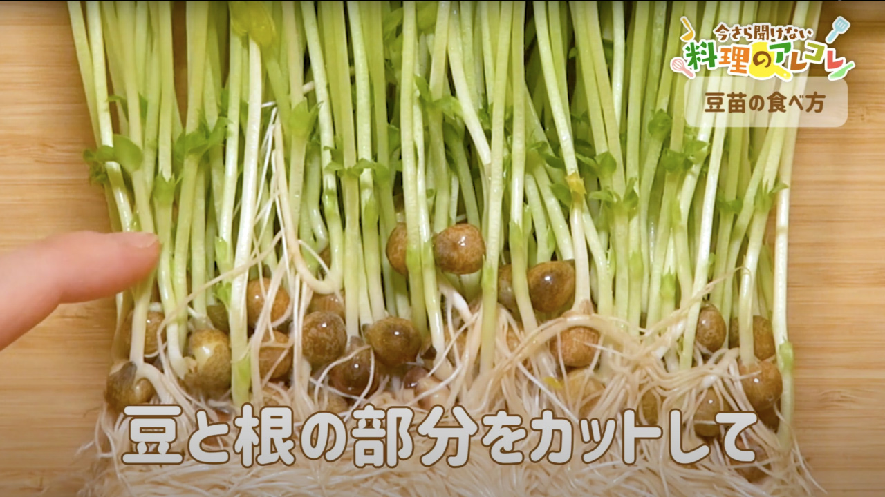 おう!豆苗は一年中いつでも手頃に手に入るうえに、残った根から芽を育てて、再収穫することもできるんだぜ!