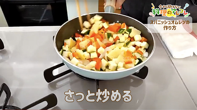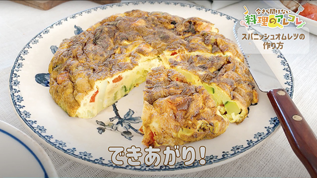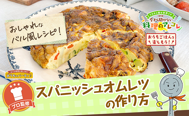 「うちのご飯は世界イチ」の番外編、お料理の基本をご紹介するミニレッスンへようこそ。第141回は、お料理オンラインイベントのメニュー「スパニッシュオムレツの作り方」です。お好みの具材で楽しめるスパニッシュオムレツのレシピを動画でご紹介します。