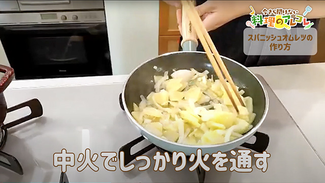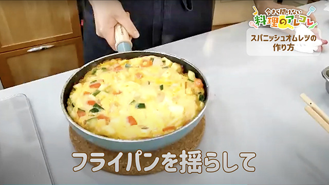 スパニッシュオムレツは具だくさんで、フライパン1つで作れるんですよ