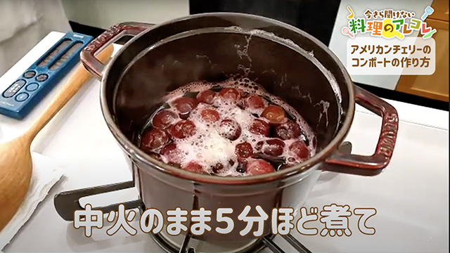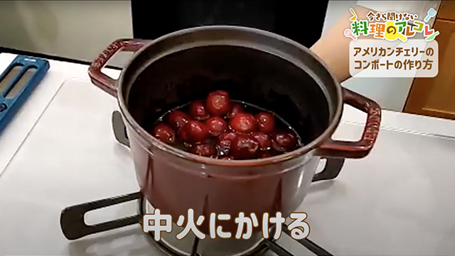 砂糖がすべて溶けて、アメリカンチェリーから水分が出たらOKです。