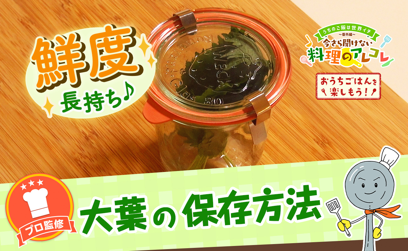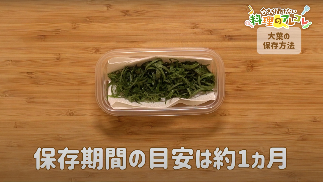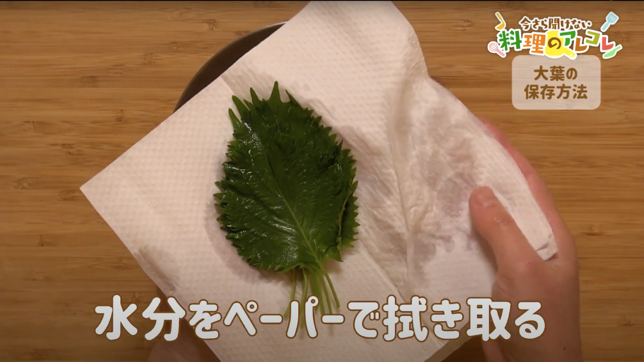 お料理の基本をご紹介するミニレッスンへようこそ。今回は、「大葉の保存方法」です。爽やかな風味が印象的な大葉を、鮮度を保ちながら長持ちさせる方法を動画でご紹介します。